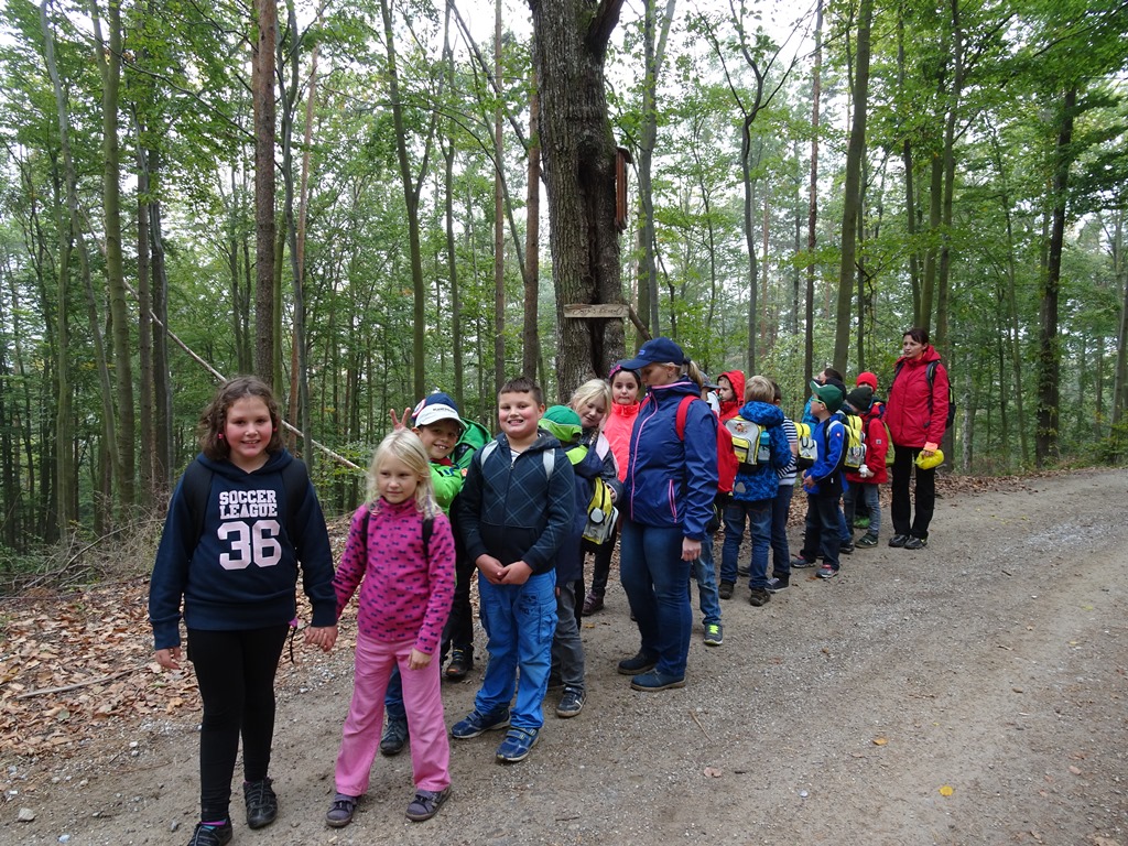 An einem der letzten, noch nicht zu kalten, schönen Herbsttage fand die erste Spielewanderung der drei ersten Klassen statt. Begleitet durch die Klassenlehrerinnen und Eltern führte der Weg entlang dem neuen "Tut-gut" Wanderwerg auf den großen Kühberg. Dort wurde die schon ersehnte Esspause abgehalten. Gestärkt ging es auf den kleinen Kühberg weiter, wo der Weg zum Pfadfindersteinbruch führte. Dort wurde Spielpause gemacht und ausgiebig die Gegend erkundet. Die Schüler durften Naturmaterialien sammeln und in die Schule mitbringen.