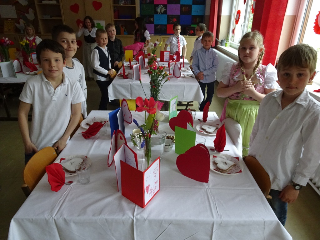 Zum Abschluss servierten die Kinder ihren Müttern eine Muttertagkaffeejause mit einem süßen Herz aus Mürbteig und verschiedenen „Glücksgetränken“.