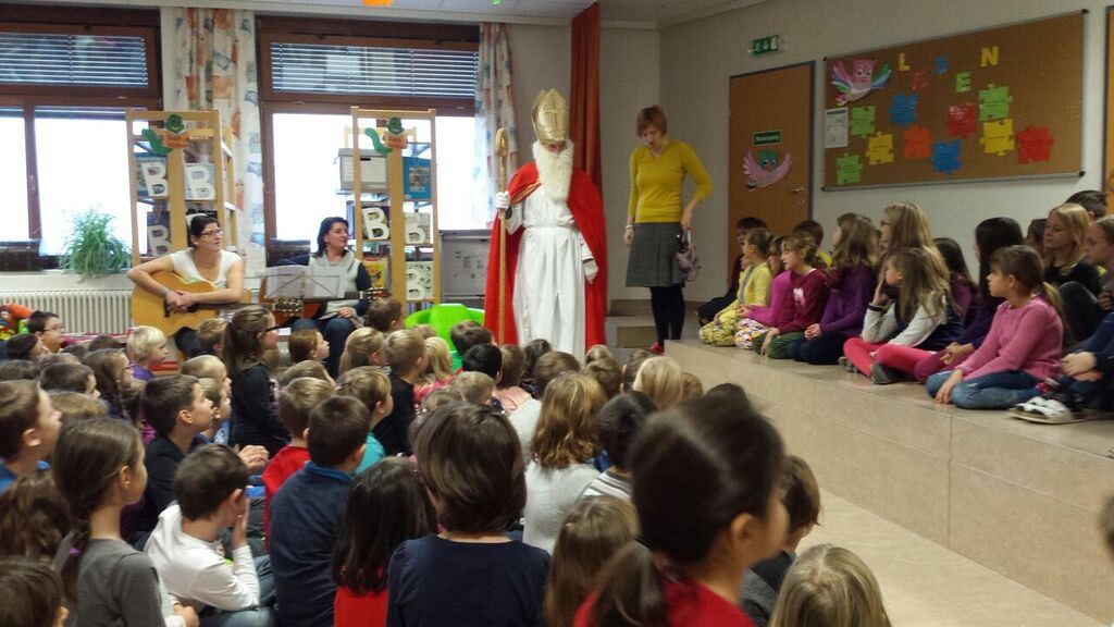 Kurz vor dem Nikolaustag trafen sich alle Schülerinnen und Schüler der Schule um den Bischof mit dem Stab zu begrüßen und ihn zu ehren. Mit Gedichten und Liedern gestalteten alle Kinder diese Feier recht schön.