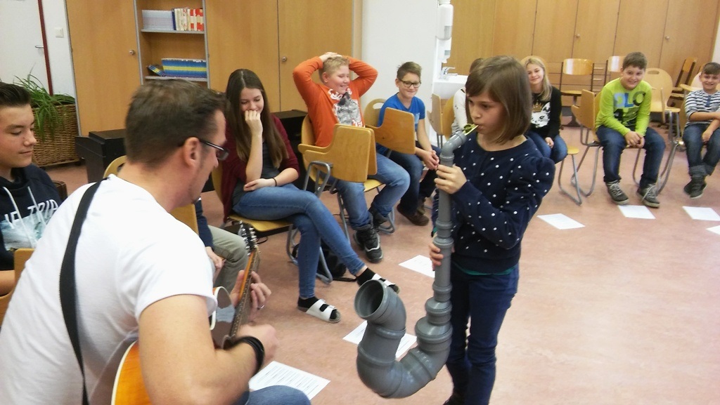 Selbst aktiv werfen konnten am Donnerstag, 8.10. die Schüler, bei einer sehr lustigen musikalischen Lesung von Mag. Gebhard Alber . Der Autor des sehr nett illustrierten Kinderbuches" Ratsch, Zatsch und Muxelmil- wie alles begann" enführte alle Zuhörer in die Welt der Riesen, Zwerge und Hexen. Es machte allen viel Spaß!