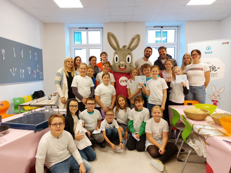 Zu gewinnen gab es den EVN Energiesparmeister*innen-Kurs zusammen mit dem Energiehasen Joulius. Bei 5 spannenden Mitmachstationen konnten sich alle Schülerinnen und Schüler unter anderem mit diesen Fragen beschäftigen: welche Glühbirne ist stromsparend, wie komme ich ohne Auto in die Schule, warum ist es wichtig sein Haus zu dämmen und wie kann man die Wärme beim Kochen am besten nutzen?