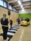 der Schule wird zu einer Straße umfunktioniert – mit einem speziellen Elektroauto werden spielerisch Situationen simuliert, die Kinder alltäglich auf ihrem Schulweg erleben - ob zu Fuß oder im